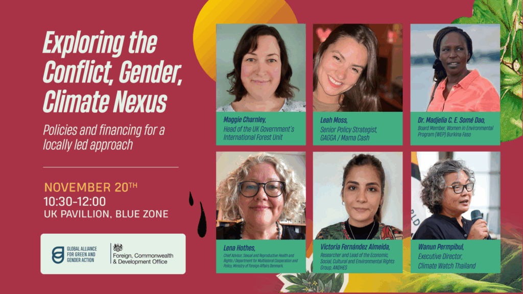 GAGGA’s participation at COP30 includes five critical side events that will highlight gender-just climate finance, locally-led adaptation, and the role of women-led organizations at the frontlines in shaping sustainable climate policy.